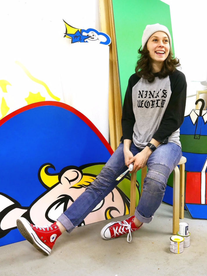 In addition to Nina’s exciting paintings and murals, her creativity can be found across TV, film and commercials. Her original artwork has been featured in publications across the globe including Playboy and Visual Magazine. She works as an Art Director and Production Designer for various global studios, consumer brands and media companies including ABC, Netflix, Walt Disney Studios, Dreamworks and Universal Pictures. She has already begun to make moves as young woman in the field leading projects for Apple, New Balance, Adidas, Hot Wheels, and Heineken. With big entertainment dreams, she soaks in all of these experiences for her future as creative director of her own animated TV show.