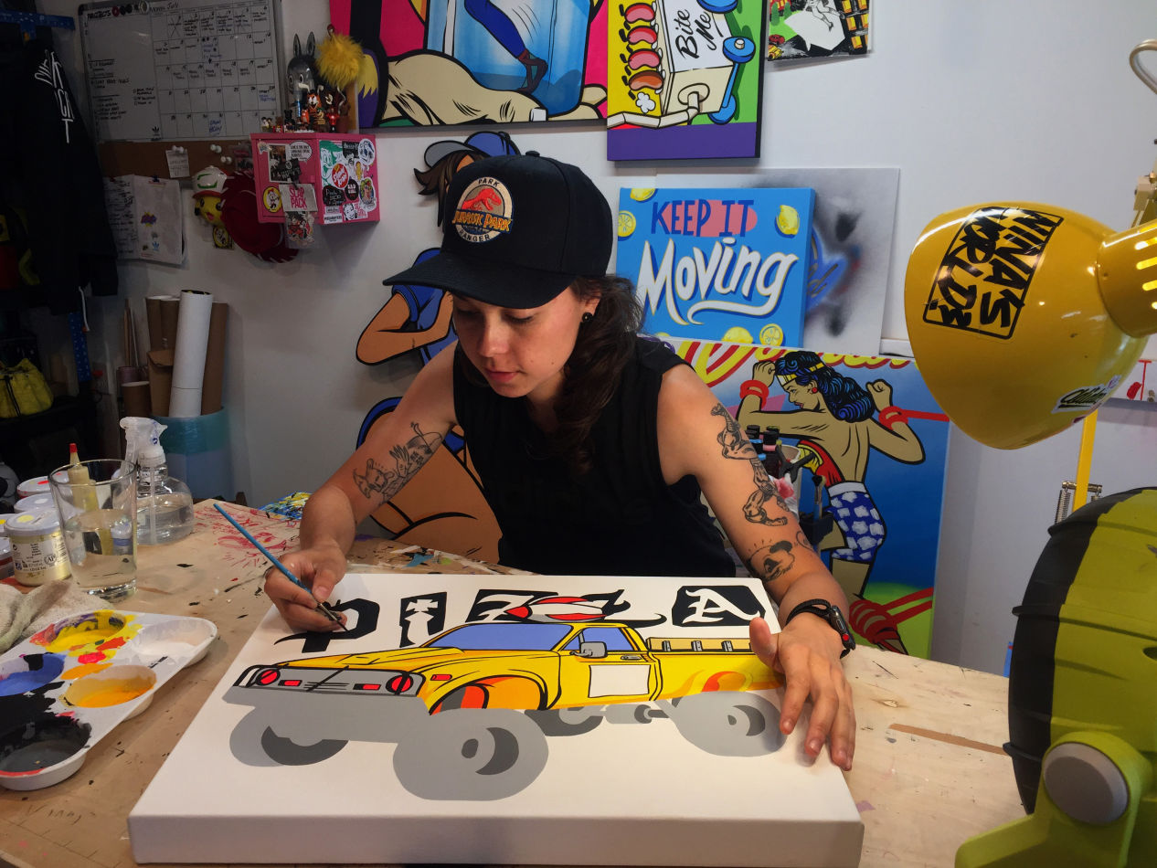 Nina Palomba is an independent artist whose colorful paintings and whimsical illustrations help her stand out in today’s contemporary scene. Her unique blend of street and pop art has become affectionately known as “Nina’s World.” Inspired by Archie Comics and the early ages of Animation including Betty Boop, Nina’s work inspires feelings of nostalgia, curiosity and love.