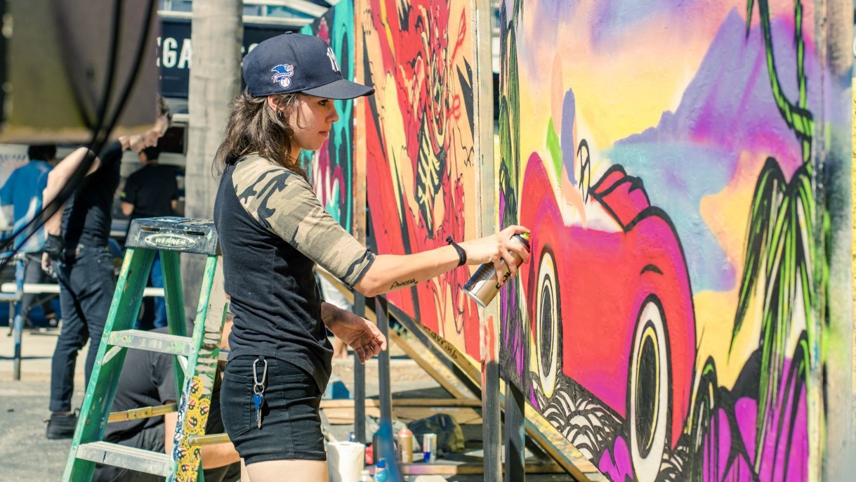 As an lgbtq+ advocate, Nina supports the community by painting uplifting murals, leading student workshops within the Los Angeles School District and partnering with non-profits on dedicated programs. She has worked with DTLA Proud, LA Pride and Weho Arts to bring original artwork and permanent murals to West Hollywood and Pride events in Los Angeles. This year Nina was chosen to be a featured lgbtq+ artist in Playboy’s “Pride is Good” Campaign. In collaboration with Playboy Nina designed a pair of Bunny Ears that were produced for World Pride Day and sold to raise money for the Trevor Project.